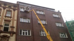 Povrch budovy jsme schopni očistit od střechy k suterénu, ať jde o jakoukoliv část budovy – nové nebo staré, vysoké nebo nízké. Máme zkušenosti s čištěním výškových fasád budov z kamene, cihel, hliníku, betonu, skla i dřeva. Práce provádíme našimi zaměstnanci pomocí vysokozdvižných plošin, závěsných lávek, horolezeckou technikou nebo z lešení.