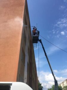 Znečištění, které se na zdech vytváří po dlouhá léta a které je vytvářeno atmosférickými či organickými nečistotami, nelze smýt jednoduše vodou. Z toho důvodu používáme k čištění fasád speciální čisticí prostředky, které fasádu žádným způsobem neznehodnocují a jsou plně biologicky odbouratelné, takže nemají negativní dopad na životní prostředí. Pracujeme dle typu povrchu s teplou tlakovou vodou, s párou nebo vysokotlakým vodním paprskem. Z fasády vám také odstraníme graffiti a aplikujeme speciální antigraffiti nátěr který povrch zabezpečí proti dalším sprejerským útokům.
